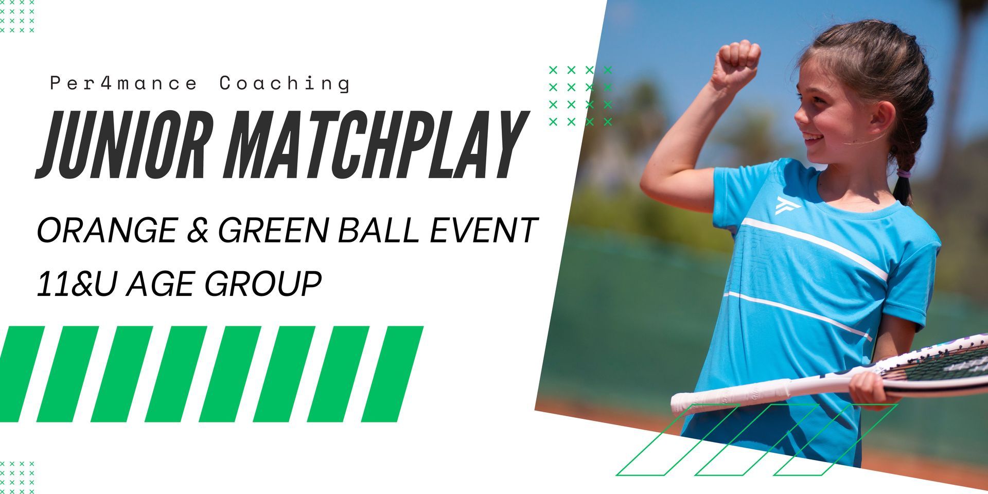 Orange & Green Ball tennis event for new players to matchplay aged 8-11yrs. Players required to be able to serve, rally and score to take part competently.
